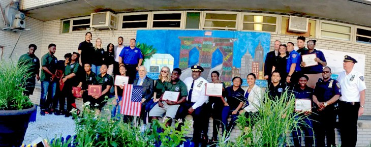 Art brings people together. The idea to bring local youth and officers from Brooklyn’s 90th together to paint a mural together was guided by NYCTogether and recording artist Usher Raymond IV’s New Look Foundation. The purpose was, “to create and depict a shared vision of positive police-community relations.”
