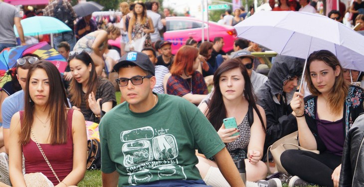 Williamsburg Walks of late has gotten bigger, louder, and more commercial. Walking down the center of the street has become more limited. Sponsors’ cars and trucks block the avenue’s flow at sporadic intersections. Sometimes this is just a delivery truck which has lost the option to park nearby the business it wants to deliver to. The grass patches — full of reclining people — are quirky treat, but also an obstacle to walkers.