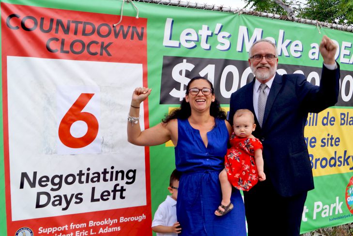 Yet presently there is an overwhelming feeling of gratitude: grateful that Norm Brodsky came to the table and made a deal; thanks also to Mayor de Blasio, State Assemblyman Joe Lentol, City Council Member Steve Levin, Congresswoman Carolyn Maloney, Borough President Eric Adams, Deputy Borough President Diana Reyna, State Senators Daniel Squadron and Martin Dilan, Council Member Antonio Reynoso, and Public Advocate Letitia James; and boundless appreciation to all the others who played a part such as Brooklyn Community Board 1, Open Space Alliance, Neighbors Allied for Good Growth, Friends of Bushwick Inlet Park, NYC Parks, El Puente, and so many other community organizations and members who camped out during a rain storm, joined in a rally, etc.