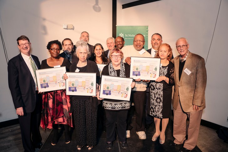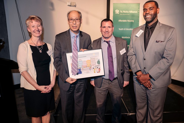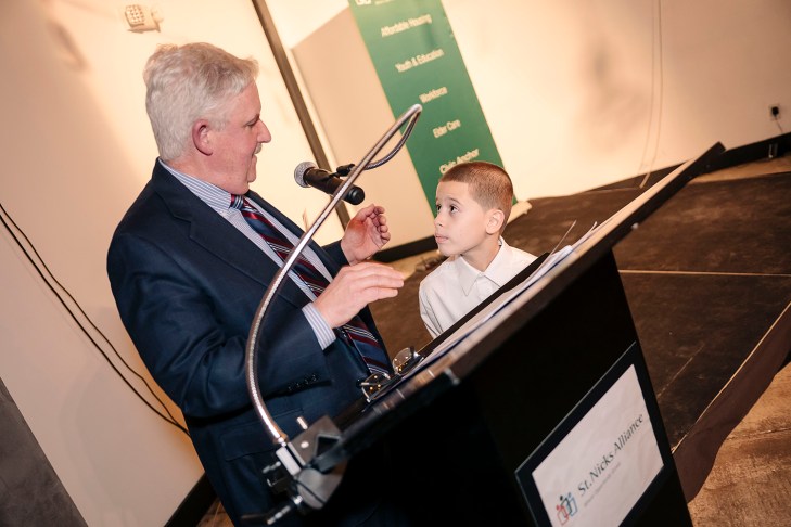 Nancy Zapata, President of Control Electropolishing Corporation and President Emeritus of St. Nicks Alliance speaks with St. Nicks Alliance Board Chair Joe Robles photo credit Stefano GiovanniniSt. Nicks Alliance Exec. Dir., Michael Rochford introduces Emerson Santos, a Youth and Education success story photo credit Stefano GiovanniniAt the St. Nicks Alliance 43rd Anniversary and Awards Celebration, Frank Lang (St. Nicks Alliance Dir. Housing) presents recognition to members of GREC (l to r) Debra Benders (president of Cooper Park Houses Tenant Association), Eric Bruzaitis (GREC), Teresa Cianciotta (Concerned Citizens of Withers Street), John D’Arienzo (St. Nicks Alliance Board), Nilsa Roman (Cooper Park Houses), Michael Rochford (St. Nicks Alliance Exec. Dir.), Jan Peterson (founder and director of the National Congress of Neighborhood Women and Chair and founding member of GREC), Elisha Fye (Cooper Park Houses), Anthony Govine (GREC), Joe Robles (St. Nicks Alliance Board Chair), Luz Rosero, (president of United Neighbors Organization), David Dobosz (St. Nicks Alliance Board) photo credit Stefano GiovanniniBrooklyn Borough President Eric Adams stopped by to salute St. Nicks Alliance at its anniversary celebration photo credit Stefano GiovanniniJulio Rivera is a double-win success story. He was assisted by St. Nicks Alliance Workforce Development in getting hired two years ago as a copy machine technician at Woodhull Hospital. St. Nicks Alliance Community Preservation helped to stop the mass eviction of his apartment building. photo credit Stefano GiovanniniLongtime community advocates and community friends (l to r) Martha Holstein, Felice Kirby, and Elisha Fye photo credit Stefano Giovannini(l to r) St. Nicks Alliance Dir. of Youth and Education, Debra Sue Lorenzen, Dir. Youth and Education honors Commissioner Bill Chong (NYC Department of Youth and Community Development) with Larry Rothchild (Dir. St. Nicks Alliance Workforce Development) and Dwayne Brown (St. Nicks Alliance Dep. Dir. for Elementary and Middle Schools) photo credit Stefano Giovannini(l to r) St. Nicks Alliance Dir. of Elder Care, Mary Ciorciari presents a St. Nicks Alliance Annual Award to Assemblyman Joseph Lentol with Conselyea Street Block President, Phil Caponegro and Teresa Cianciotta photo credit Stefano GiovanniniThe night was packed with friends and supporters of St. Nicks Alliance, which was held at the event space, Dobbin St photo credit Stefano GiovanniniThe performance from MS 577 students enchanted the crowd.