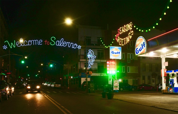 Salerno Service Station on Lorimer Street is a neighborhood classic since it put up shop in 1959. Every year they do a holiday display with music and lights to brighten the holidays. Photo credit Jay Hirsch