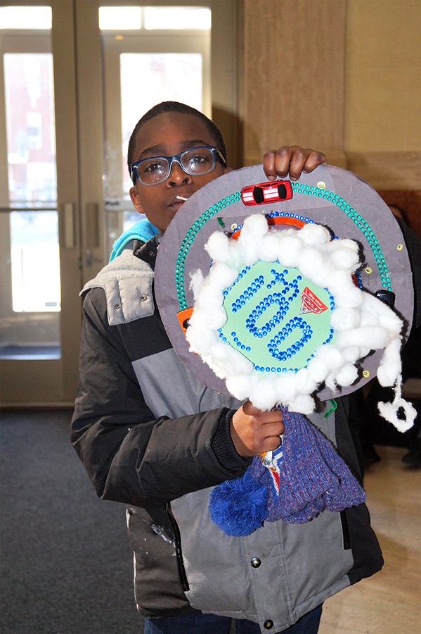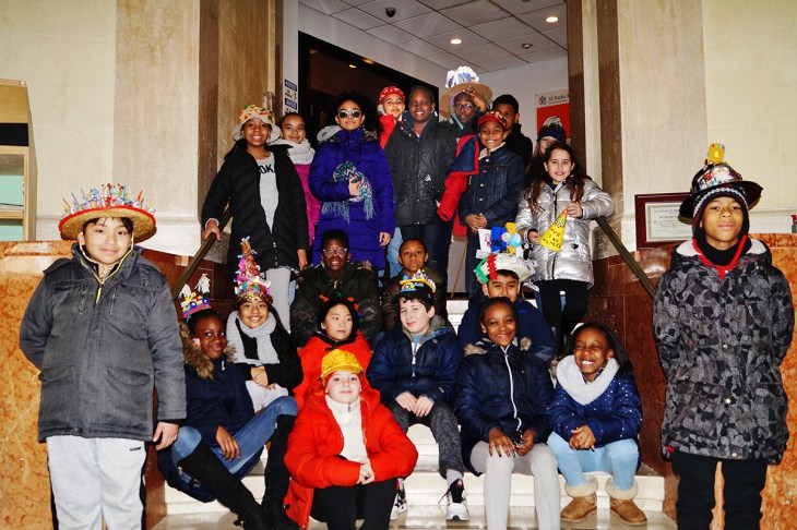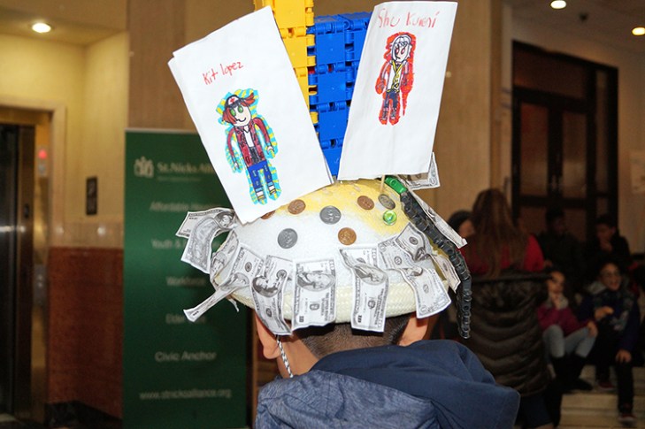 This Valentine’s Day clocked in as the 100th Day of School for local schools. This day is used as an opportunity to investigate mathematical concepts as teachers inspire their students to participate in creative math and counting applications. Students from PS 132 visited designated nearby businesses and neighbors some wearing hats with 100 items glued on. A fifth grade class dropped by St. Nicks Alliance’s offices at 2 Kingsland Avenue. One student counted 874 steps from the school to there. The 100th day also marks the school year has passed its halfway point.