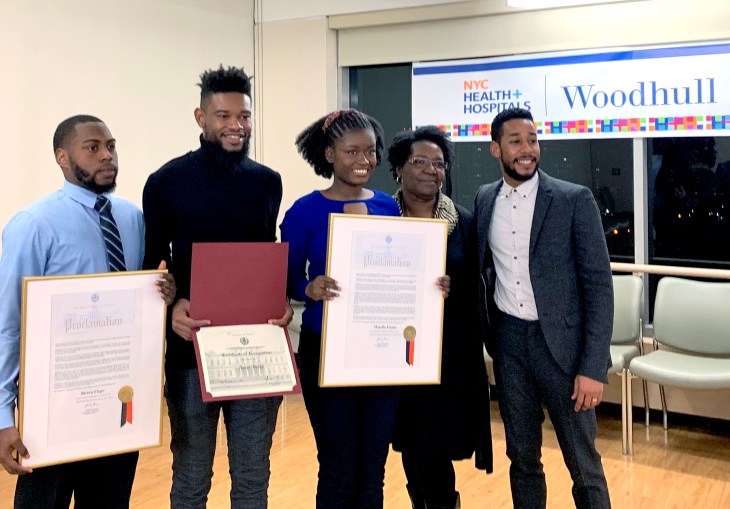 This year Council Member Antonio Reynoso honored Debra Benders, Cooper Park Residents Council president; Steven Ciego, Brooklyn Ballers Basketball coach; and Ornella Enoise, Brooklyn School of Math and Science student at his annual Black Leadership Celebration. The event was held in the solarium of NYC Health + Hospitals Woodhull Hospital. Council Member Reynoso and Ausar Burke from Churches United for Fair Housing (CUFFH) opened the celebration, and then Bishop Dr. Michael Clarke, President of the 83rd Clergy Council gave the invocation. Woodhull Chief Executive Officer Gregory Calliste was the special speaker and the crowd was entertained by Cynthia Hernandez’s rendition of “Natural Woman” and the El Puente Dance Team.