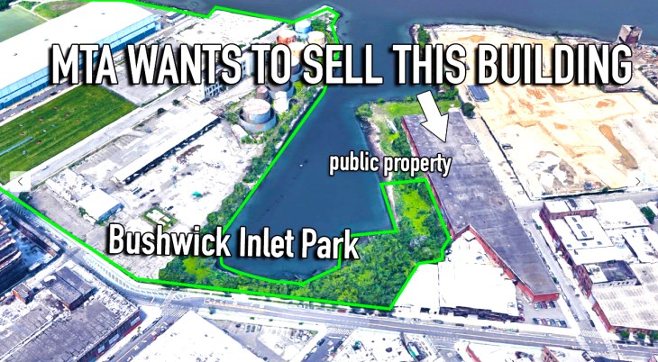 40 Quay Street is publicly-owned land fronting onto Bushwick Inlet and Bushwick Inlet Park, a 27-acre city park that is currently under development. The property has been used by the MTA for many years as a storage facility for mobile wash trucks. This past summer, the MTA released an RFP seeking proposals to redevelop the site for residential use. The MTA seeks to build another waterfront high-rise to add money to replenish their coffers.
