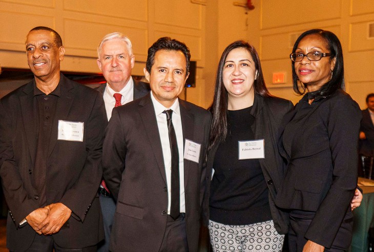 (l to r) Milton Brown, St. Nicks Alliance Workforce Development Job Readiness Trainer; Michael Rochford, St. Nicks Alliance Exec. Dir.; Jose Leon, St. Nicks Alliance Dep. Exec. Dir.; Fabiola Bernal, St. Nicks Alliance Workforce Development success story star; Beatrice Brown, St. Nicks Alliance Workforce Development Account Manager Photo Credit: Stefano Giovannini