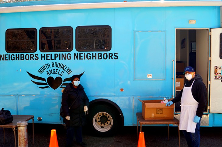 Starting on April 7, the North Brooklyn Angels have changed their meal distribution method from the Angelmobile to prepackaged meals to the usual distribution sites via van to minimize physical contact. The need for meals has increased, sometimes doubling at some sites. During the first week of April a total of 1800 meals were distributed.