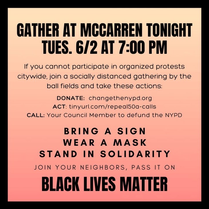 The June 2nd McCarren Park protest will begin at 7 p.m.