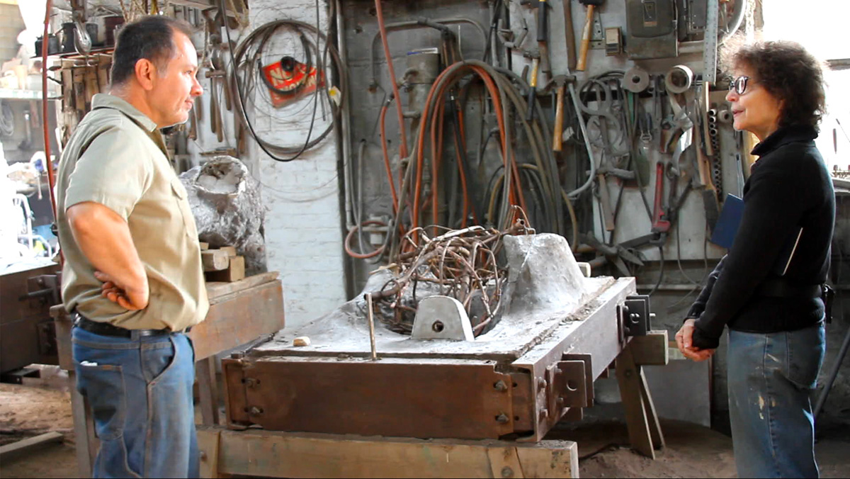 Bornstein’s previous public projects include the small bronze, Live Well! whose first installation was in TriBeCa Park in 2000 and then traveled over seven years to parks in several other states. Bornstein is a painter also an describes her work as centering on human beings, “with the hope or belief in the human potential for intelligence and compassion — and the tension between these and other human propensities.” Her more recent public sculptures are of other fellow creatures who look for a connection with us, Praying Mantis Seeks Friends and Pig Seeks Friends — both temporary installations through NYC Parks and City Parks Foundation in 2017 and 2018.
