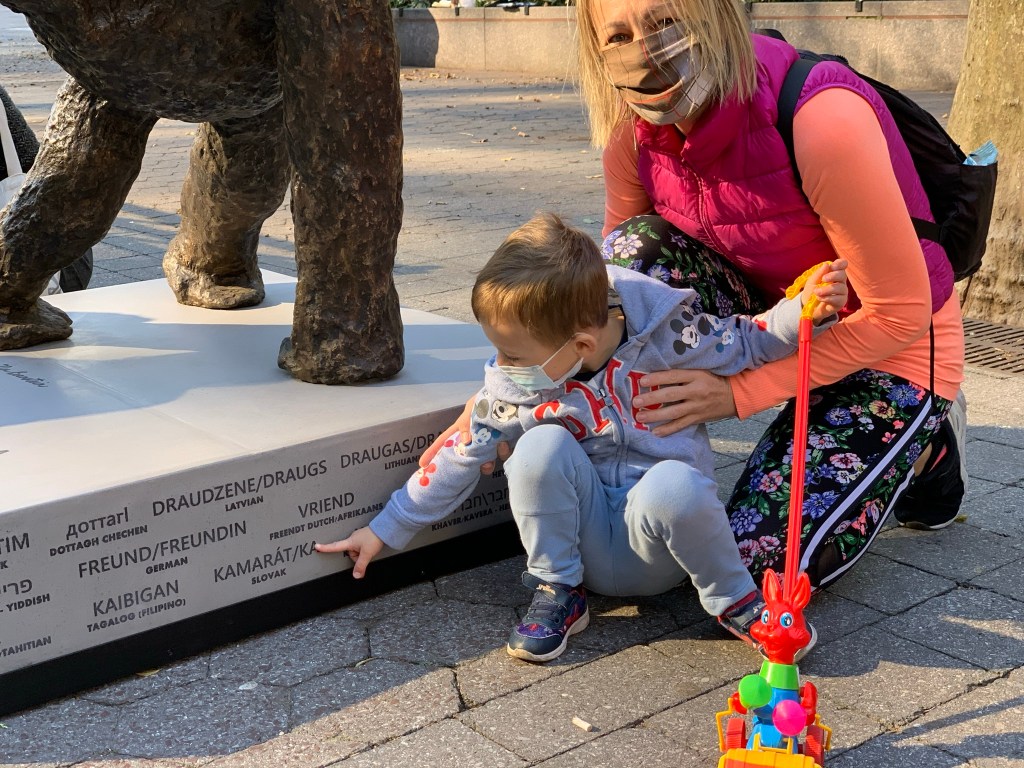 Come by and hi-five Peace Gorilla and learn the word for ‘friend’ in 90 languages inscribed on the base