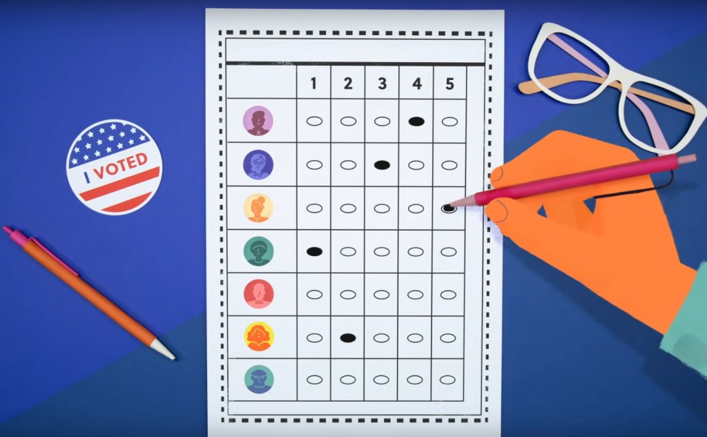 How do you vote in a ranked choice voting system? Instead of checking only one candidate on your ballot, you rank your top five in order of preference. Don’t worry— you aren’t voting for multiple people at once. Your vote only counts toward your first choice in the first round of tallying. Also, you don’t have to rank five candidates; you can rank any number of candidates from 1 (meaning you only vote for one candidate) to 5 (or any number in between, if you only want to rank 3 candidates you can.)