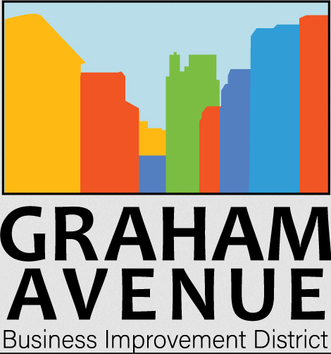 What’s new? A new logo was recently unveiled. Also, to help beautify the district the BID partnered with City Cleanup Corps interns assigned to the BID, NYPD 90th Precinct Community Affairs officers, and parent and teacher volunteers from P.S. 257 to clean up, paint, and mulch the tree pits along Graham Avenue.
