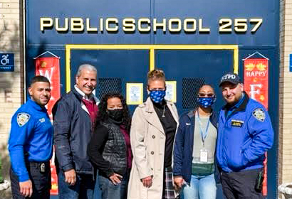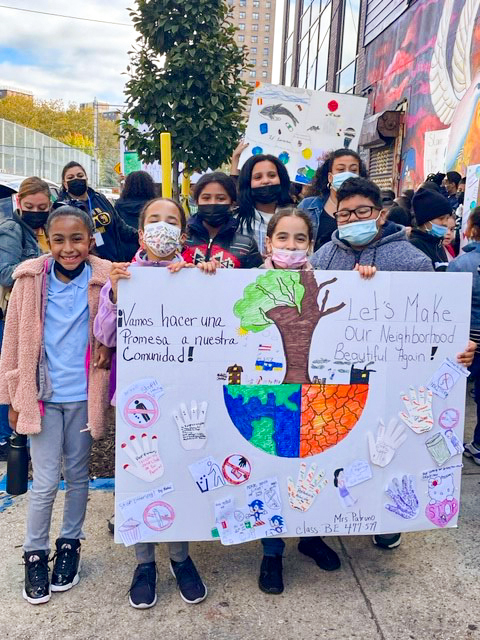 “This is an example of how merchants in our commercial district actively work together with community partners to take care of our neighborhood. In line, with the BID’s motto to ‘grow businesses and community together in new directions’,” said Valentin. Then on October 26th thanks to Principal Idalys Camacho, forty to fifty students from P.S. 257, led by their student council, helped to spruce up the tree beds. They planted wooden flowers and placed plaques on trees indicating that they have adopted the trees in the district and will be working with the BID to maintain them. “For the kids this was a real lesson in being responsible and caring for their neighborhood,” said Valentin. Currently the BID is promoting holiday shopping in the district. New holiday lights and banners will be going up shortly after Thanksgiving.