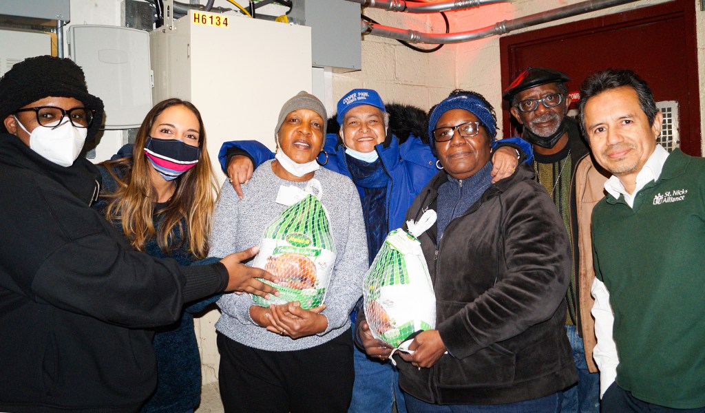 The holidays are here, and there are many who are struggling. To ease some of this struggle, St. Nicks Alliance has been distributing holiday meal essentials by virtue of support from Trinity Human Services Corp., Southside United HFDC–Los Sures, North Brooklyn Angels, Cooper Park Houses Residents U.S. Representative Carolyn Maloney, and NYS Senator Julia Salazar. On November 19, tenants from Cooper Park Houses started lining up at 1 p.m. to receive a turkey and Thanksgiving fixings (cornbread mix, stuffing, mashed potatoes, canned pumpkin, green beans and corn, fresh sweet potatoes and other vegetables, and more.)