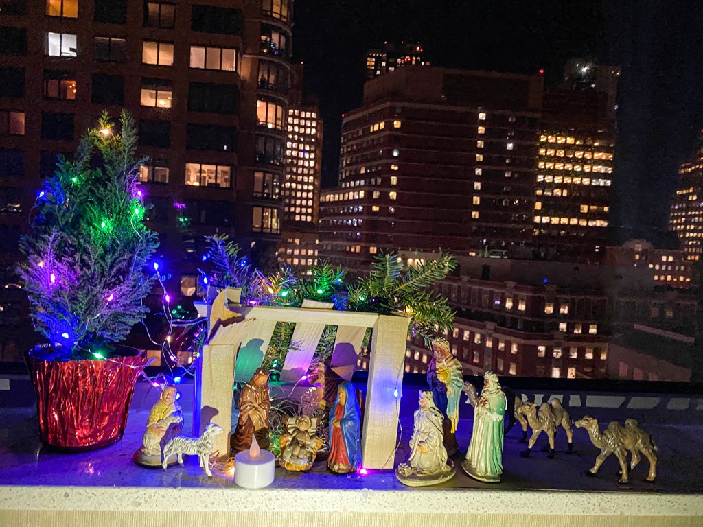 “Each year I create a very elaborate nativity scene that has even received media attention. Here in the hotel room, I’ve created a very tiny version of what I used to create in my apartment.”