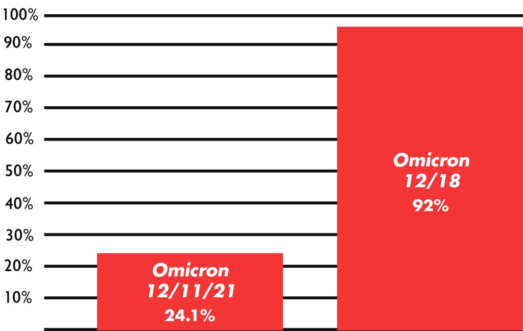 Omicron was first detected in NYC on December 4. Via their genomic surveillance of SARS-CoV-2, the CDC informed that Omicron was 24.1% of cases in HHS Region 2 (New York, New Jersey, Puerto Rico, and Virgin Islands). On December 18, Omicron hit 92% of cases in this region.