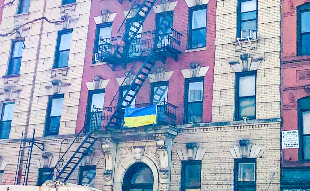 There is more. At the start of the Russian invasion, a Ukrainian flag has been seen flying above scaffolding on Calyer and Lorimer Streets. There are several others popping up throughout the neighborhood. The scaffolding has since been removed, but the flag remains. A child’s hope drawn in blue and yellow crayon was taped to a Metropolitan Avenue apartment window. A GoFundMe (https://www.gofundme.com/f/neighbors-uniting-for-neighbors-in-need-ukraine) set up by Greenpoint neighbors to support Ukrainian refugees arriving in Poland has raised $23,760 — as of this writing.