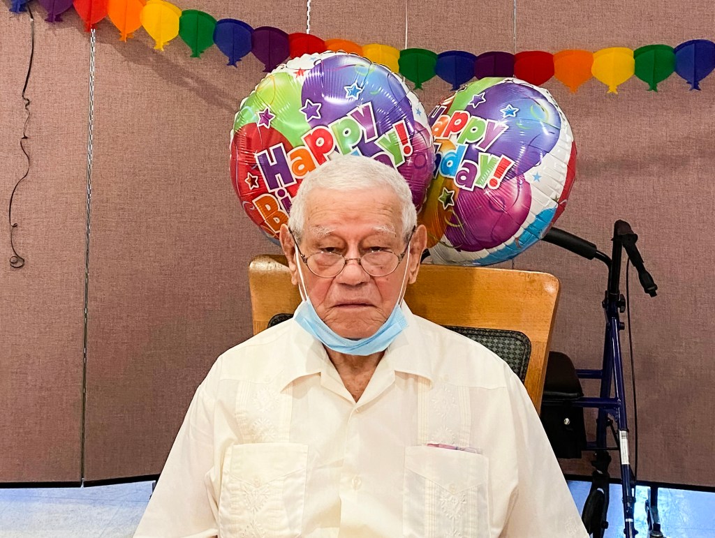 When asked what his secret was for living a long, healthy, and productive life, Mr. Vega pointed to genetics and hard work. His grandmother lived to the age of 112 and his uncle (who is still alive in Ohio) is now 102 years old. Mr. Vega shared that he started working at a very young age to help support his mother. He enjoyed black coffee and green bananas in his youth. He was born in Puerto Rico. He worked as a landscaper for the University of Puerto Rico, before he retired. Mr. Vega is a man of great faith and shared that he believes the main reason for his longevity can be found in the scriptures that teaches to “honor your father and mother, that your days may be long upon the land which the Lord your God is giving you.” He is a father, grand-father, brother, uncle, and grand-uncle. He walks with the assistance of a rollator for long distances. He is pleasant, polite, alert and witty. He is also humble so he didn’t want a big fanfare for his birthday. His wish was to celebrate this milestone with his family, friends, Jennings Hall staff, and a select group of members from his church, including his Pastor, and he got his wish.
