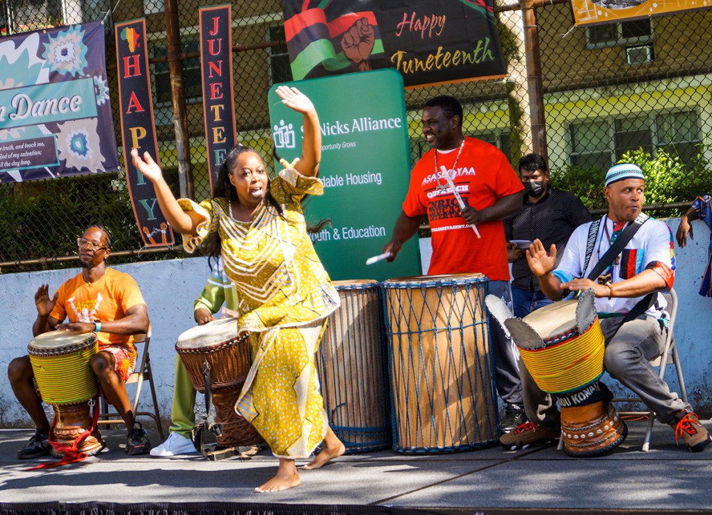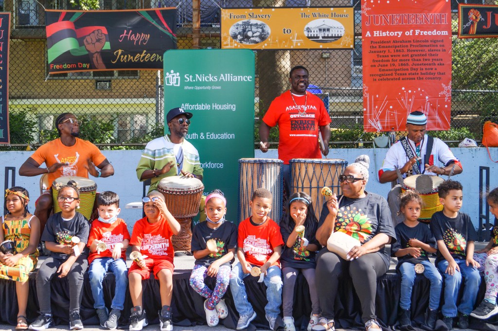 For the second year, the Juneteenth Committee and St. Nicks Alliance organized and hosted a Juneteenth celebration. This year the festivities took place at P.S. 250’s schoolyard, but all ages were represented by the audience.