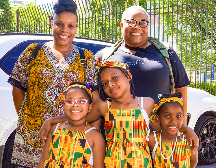 Mistress of Ceremonies for this year’s Juneteenth Celebration was Charisse Owens (back right) Photo Credit: Lori Ann DoyonThe Juneteenth parade begins its route around the block. Photo credit: Lori Ann DoyonTheresa Womble of Williamsburg Houses Residents Association and St. Nicks Alliance Board with her daughter (on left) and granddaughter (on right) all dressed up for the Juneteenth Celebration at P.S. 250 Photo Credit: Lori Ann DoyonDeneise Jennings-Houston (Juneteenth Committee co-Chair) raises the American and Juneteenth flags high. Photo Credit: Lori Ann DoyonMichael Rochford (exec. dir., St. Nicks Alliance), Karen Leader (Juneteenth Committee), Evelyn Cruz (district director for U.S. Representative Nydia Velázquez), and Dealice Fuller (chair, Brooklyn Community Board 1) Photo Credit: Lori Ann Doyon Students of P.S. 250 enjoy Dr. Lorenzo Pace’s telling of his story Jalani and the LockPhoto Credit: Lori Ann DoyonAsase Yaa set the rhythm for the audience to dance. Photo Credit: Lori Ann Doyon