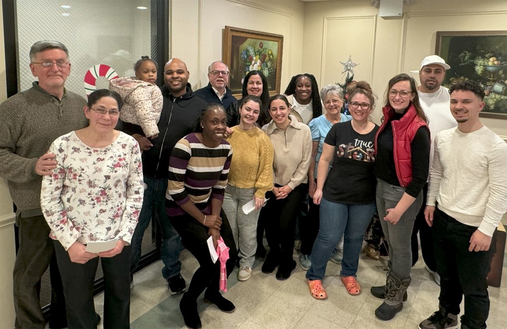 For around twenty-five years Pastor Philip Waldvogel of Williamsburgh Pentecostal Church (674 Metropolitan Ave.) brings his team of carolers and his tuba to entertain the seniors of Jennings Hall each Christmas. This year this tradition arrived on December 14. The songs are filled with the spirit and meaning of Christmas and the audience receives lyrics sheets so they could sing along.
