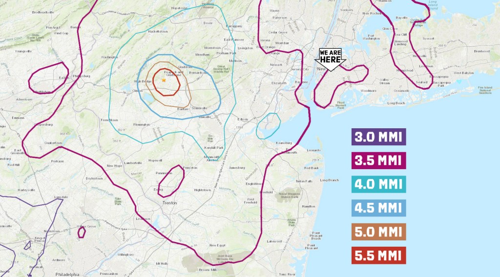 At 10:23 a.m. on April 5, 2024 the earth moved in NYC, New Jersey, and Pennsylvania for about 15 seconds. An earthquake registered 4.8 magnitude at its epicenter or 5.5 there on the Modified Mercalli Intensity Scale (MMI).