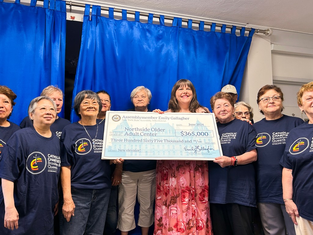 On the morning of June 13, NYS Assembly Member Emily Gallagher went to the Northside Older Adult Center to present a $365K check to give the center a new elevator.