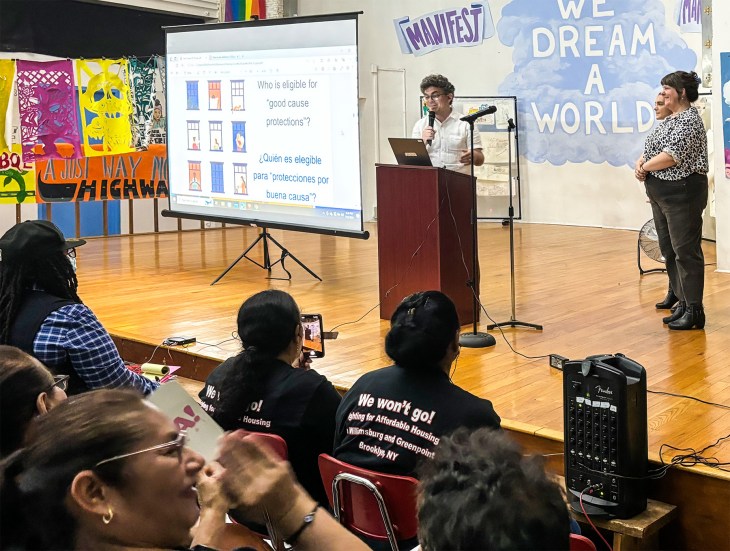 NYS Senator Julia Salazar, hosted a town hall at El Puente (211 South 4th Street) on Tuesday, July 23 to talk about the new Good Cause Eviction law, and what it means for tenants in unregulated apartments across New York City.