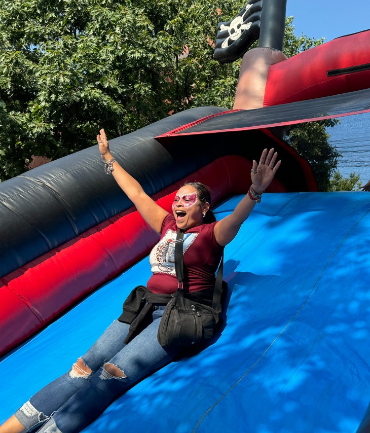 All ages had fun with the slide at Williamsburg Houses Family Day
