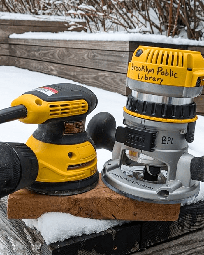 Here are some of the rules for the Tool Library: Greenpoint Library is the only library where you can pick up and return tools locally; you can borrow up to three tools, including one power tool for one week; you place the tool(s) needed on hold with a valid Brooklyn Library card; you’ll be informed by email when the tool is ready for pick up; to pick up come to the library and show an I.D. with current address; you have seven days after being notified to pick up the tools, after that they will be put back into circulation; return your tool clean with all the components it came with; return it in person — do NOT drop in book drops; if a tool is not returned by fourteen days (and it should be returned by seven) it will be marked as missing, and a replacement fee will be assessed and added to the account — replacement fees depend on the cost of the tool to be replaced and will block the patron from borrowing, renewing, and making holds for other library materials in the interim. This fee will be removed from the account upon return of the tool. This is to ensure access of the tools to the community.