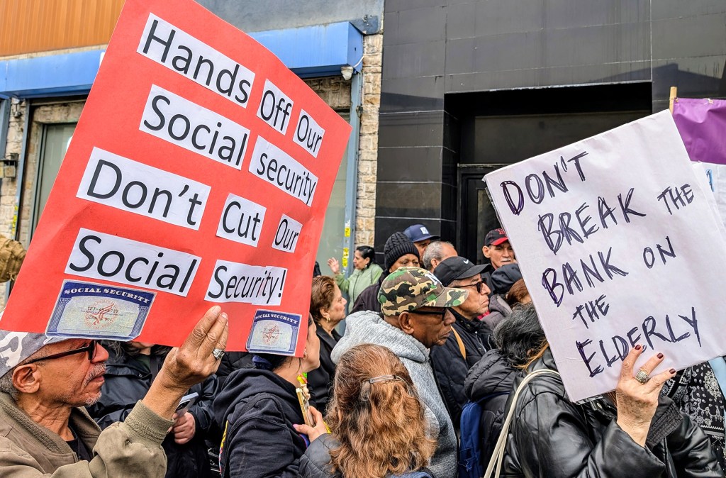 On April 15 at 10:30 local seniors gathered in front of the Bushwick Social Security Office on 785 Flushing Avenue to stand up and say “Hands off” to the Trump administration who had begun implementing changes to the Social Security Administration (SSA) the day before.