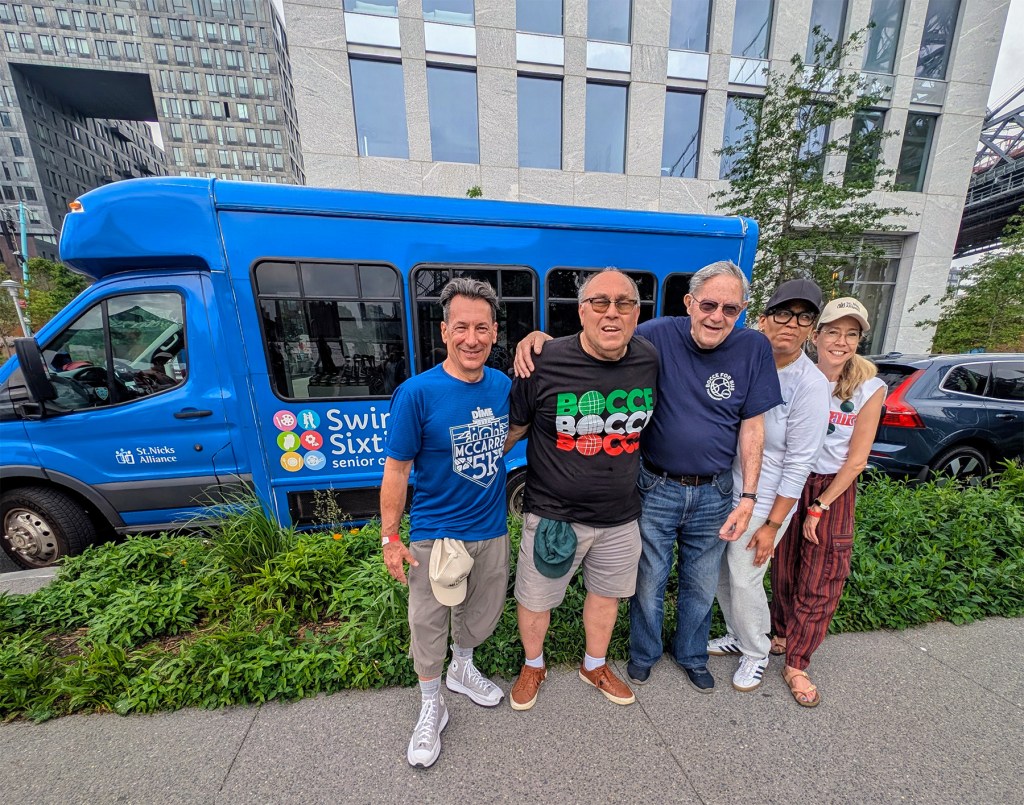 Before there was a bus, there was bocce. The tournament began June 2017 in order to help purchase the bus/van, which became the Swinging Sixties Senior Bus. The first few tournaments were held at the bocce courts at 211 Ainslie Street. Then, Domino Park offered their courts in the past few years.