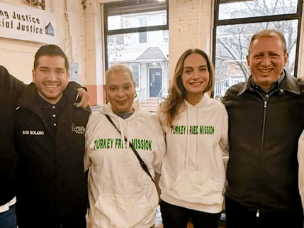 On the day before Thanksgiving, NYS Senator Julia Salazar and NYS Assembly Member Maritza Davila joined Churches United for Fair Housing (CUFFH)’s annual Turkey Fried Mission. A long line of people received a freshly deep-fried turkey. CUFFH fries turkeys because hundreds of families in the community don’t have stoves.
