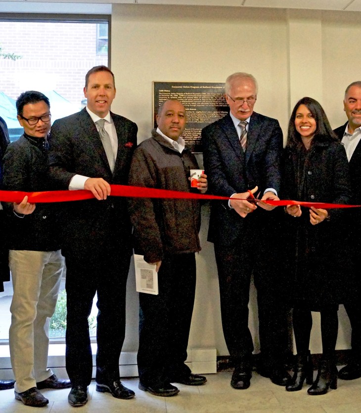 A ribbon cutting celebrated the rejuvenation of 590 Dekalb Avenue, a building of affordable senior housing units that first opened for residents in 1984.