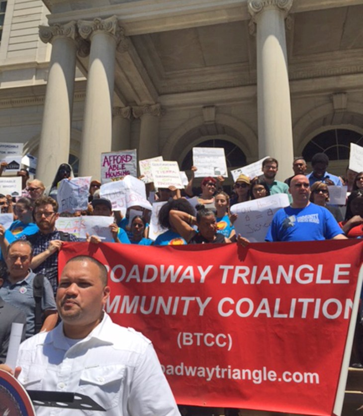 The Broadway Triangle Community Coalition rallied on the steps of City Hall on July 12…