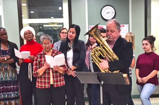 Pastor Philip Waldvogel brought his talent on the tuba over to Jennings Hall to celebrate Christmas with the seniors.
